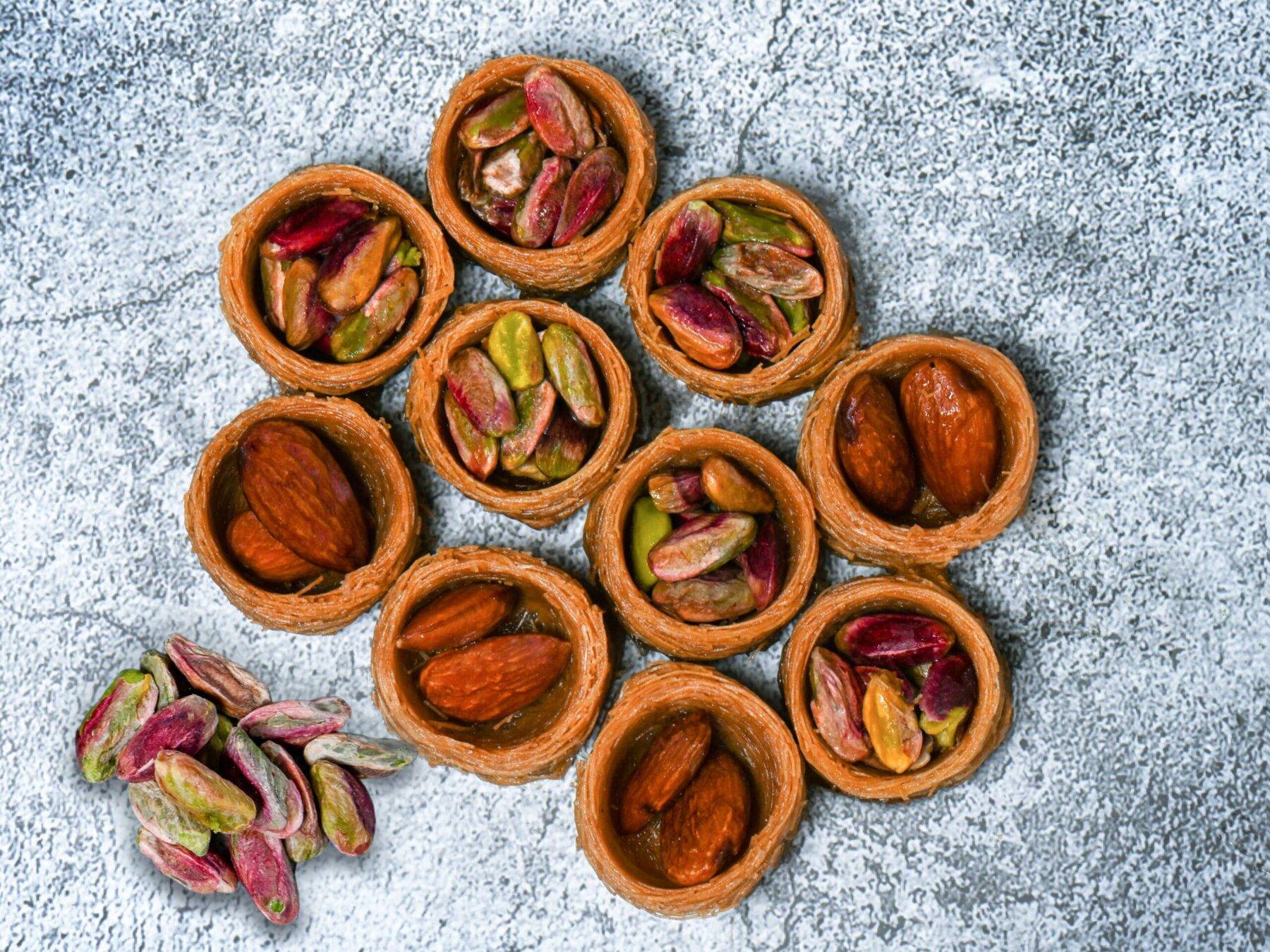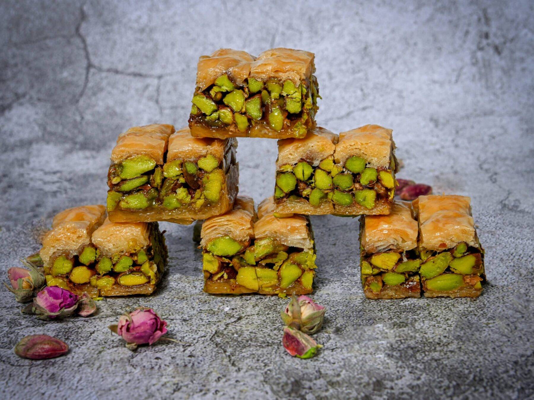 Wir verwenden nur hochwertige Zutaten wie Pistazien, Datteln, Grieß und echte Butter – für Süsse, die im Gedächtnis bleibt.