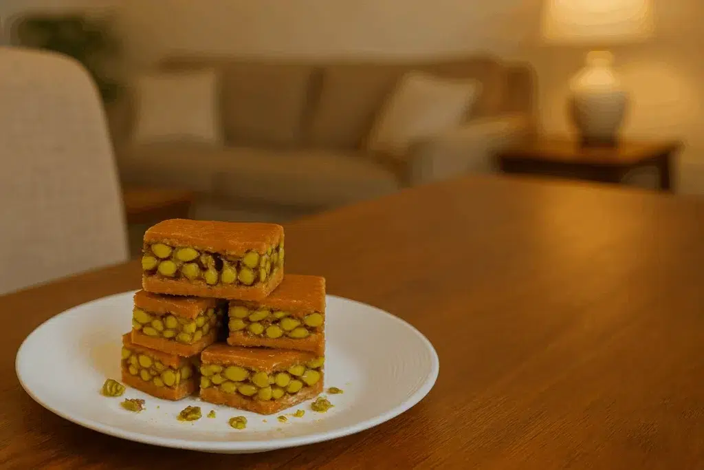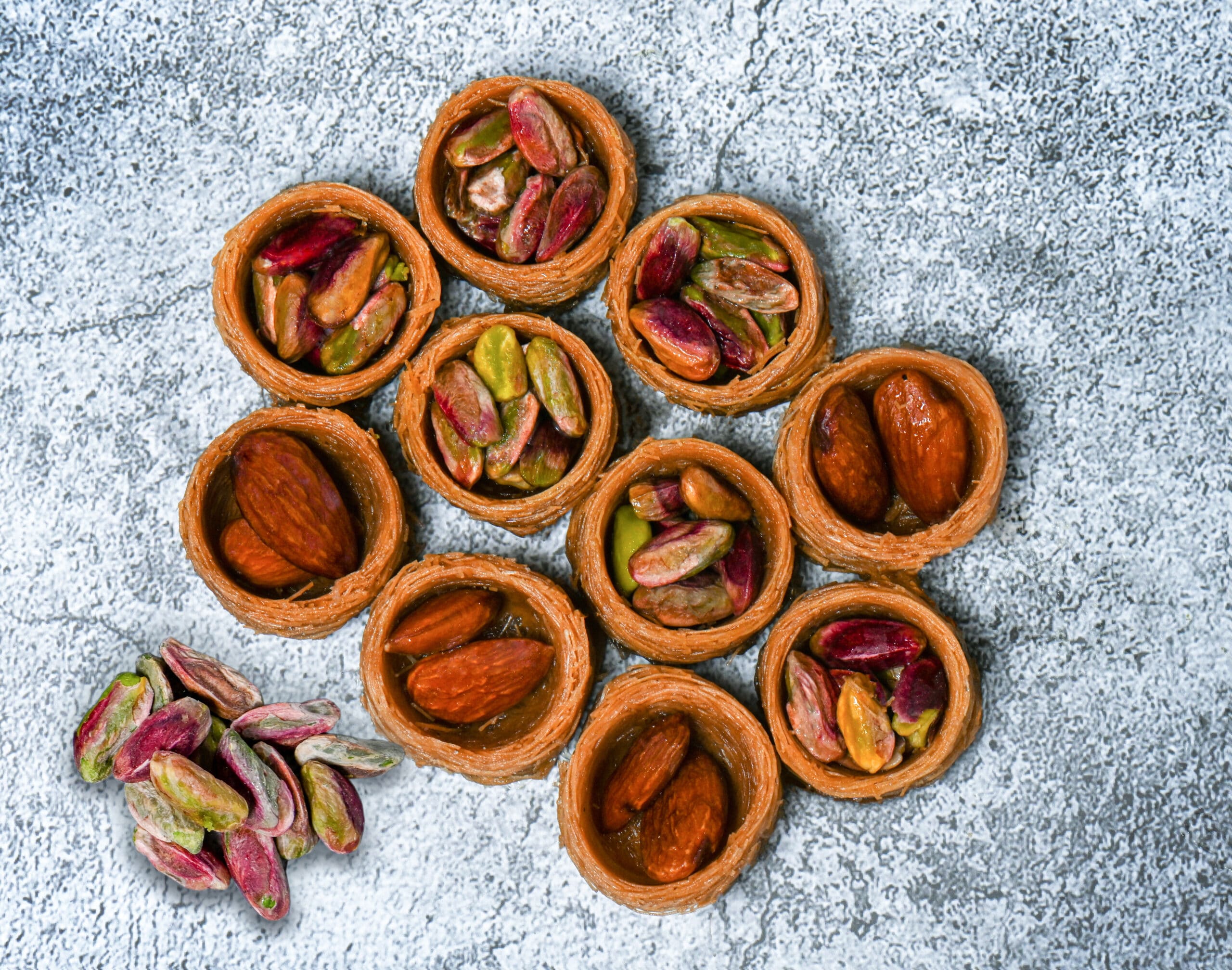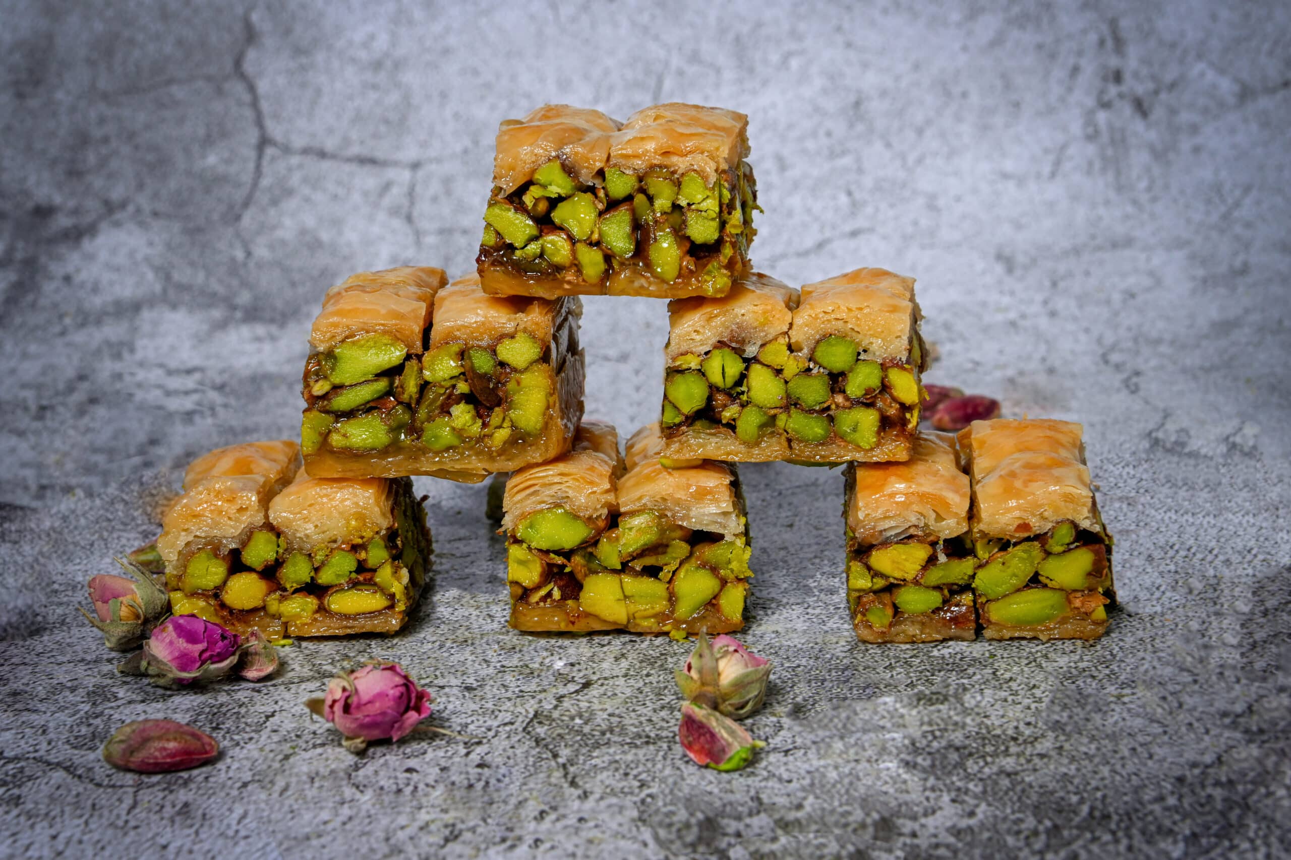 Wir verwenden nur hochwertige Zutaten wie Pistazien, Datteln, Grieß und echte Butter – für Süsse, die im Gedächtnis bleibt.